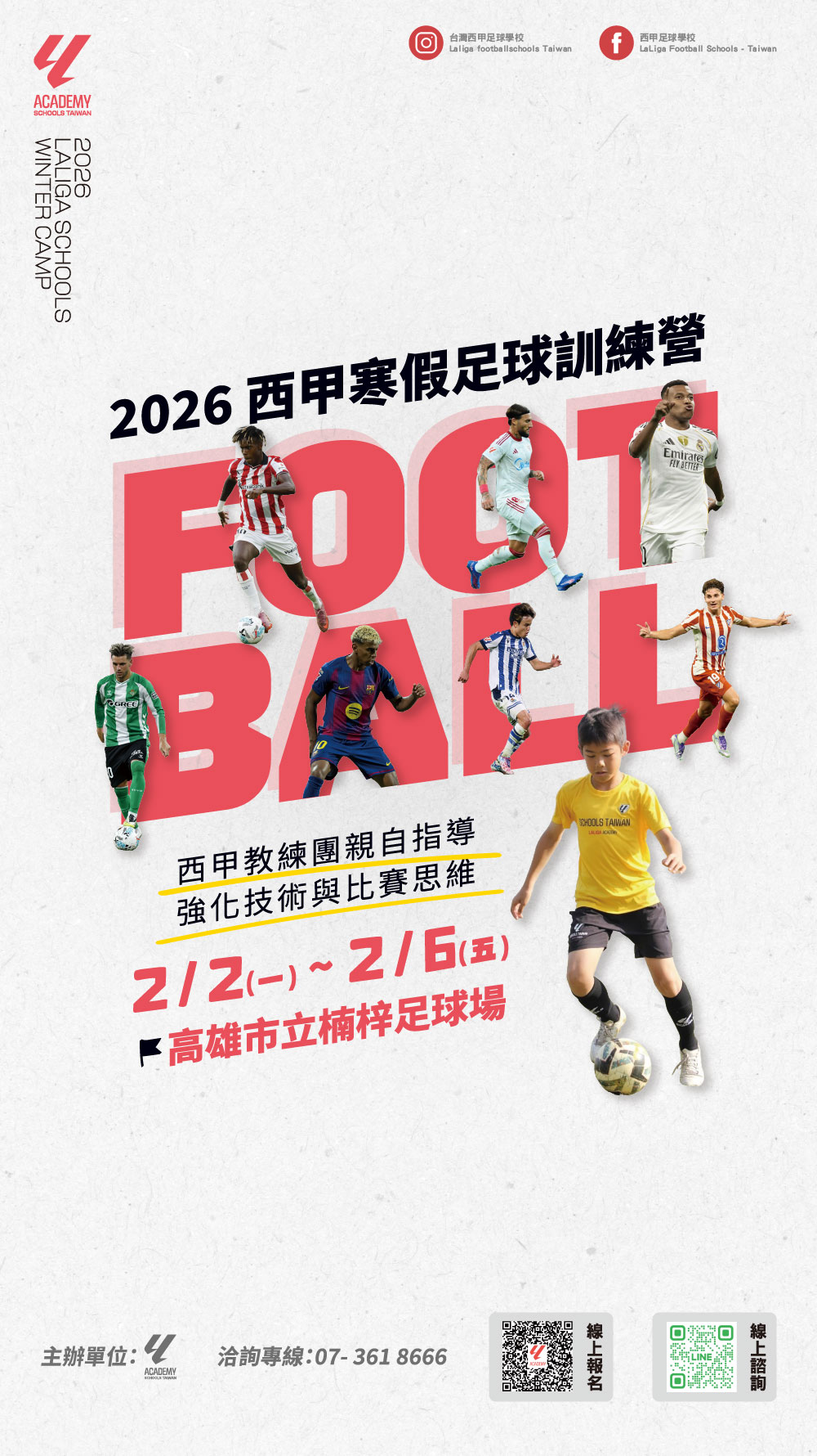 西甲足球學校由世界上最強的足球聯賽- 西甲聯賽創建,為台灣各地的年輕球員提供專業足球體驗,其卓越的訓練方法被公認為全球訓練和發展的黃金標準。